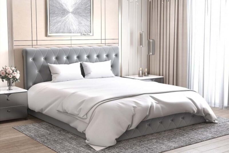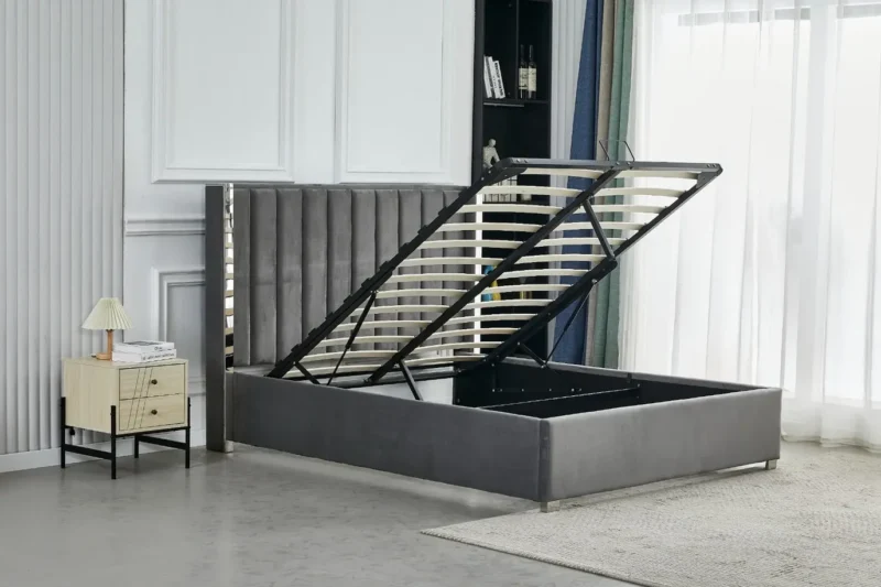 Lit Coffre Gris Prince en velours