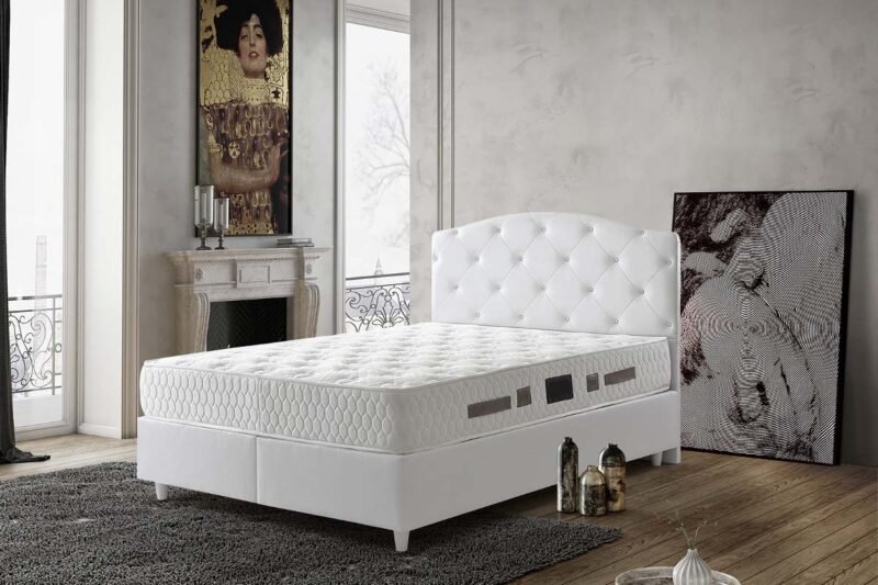 LIT COFFRE BARI BLANC EN SIMILI CUIR