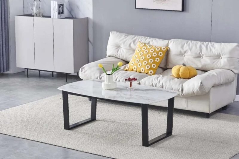 Table Basse Lola Marbre Blanc Pieds Noir 1m20