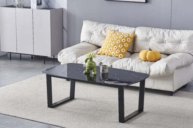 Table Basse Lola Marbre Noir Pieds Noir 1m20