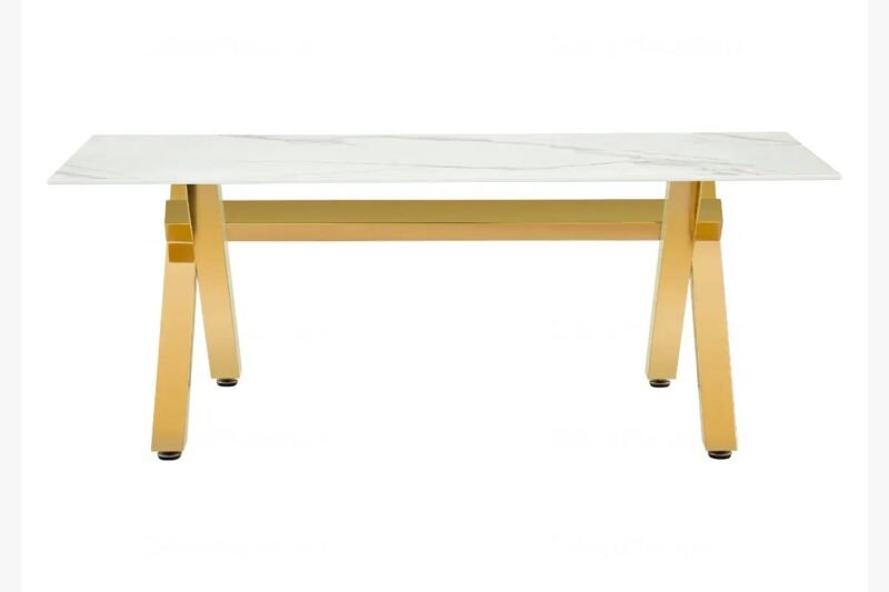 Table basse marbre blanc pied doré CROSS