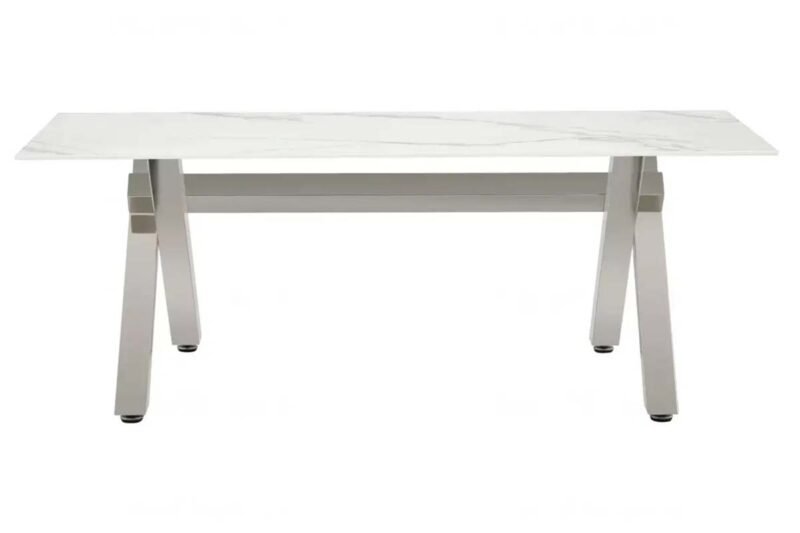 Table basse marbre blanc pied argent CROSS