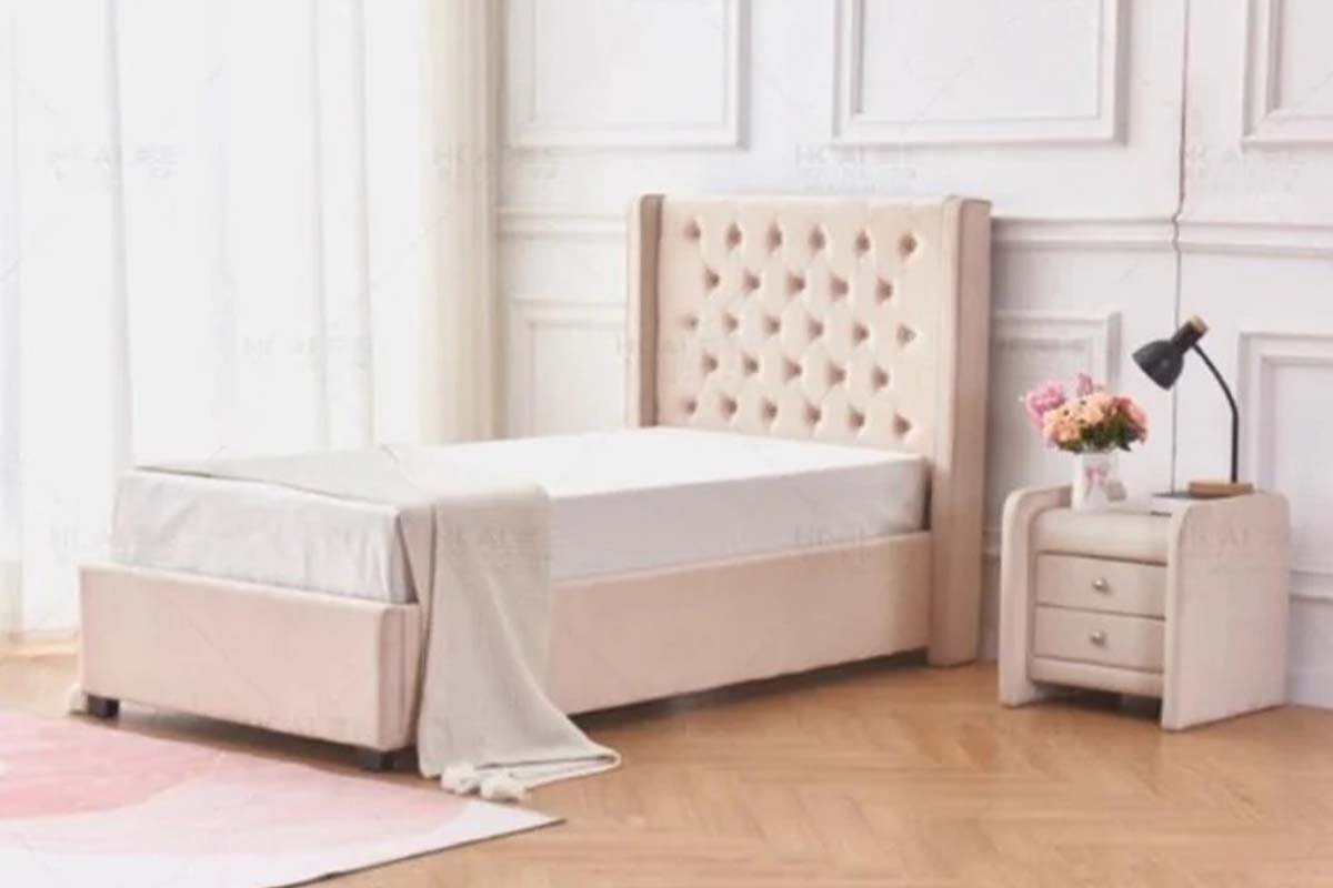 Caractéristiques : Le revêtement en velours donne au lit un aspect luxueux et élégant. Le design touffeté, également appelé matelassage, ajoute une touche classique et décorative à l’ensemble du lit. Le quilting consiste à coudre le tissu de manière à créer des motifs d’indentations ou de boutons uniformément espacés, donnant un aspect matelassé.