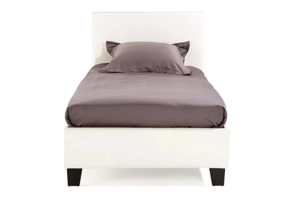 Présentation du lit simple Melburn en simili cuir, méticuleusement conçu pour le confort et le style dans n’importe quel environnement pour une personne seule :