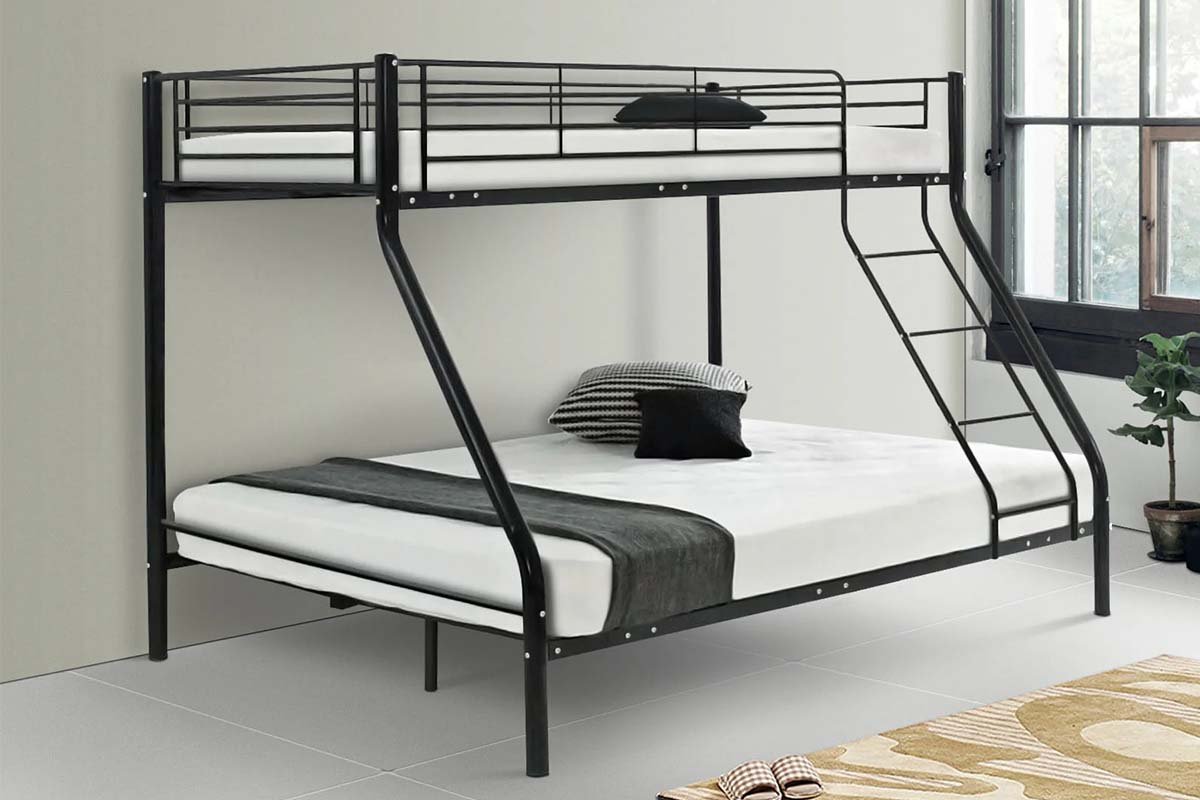 Un lit superposé en métal 2+1, également appelé lit superposé triple, est un meuble polyvalent et pratique conçu pour maximiser l’espace de couchage dans une chambre. Voici une description complète d’un lit superposé métallique 2+1 :
