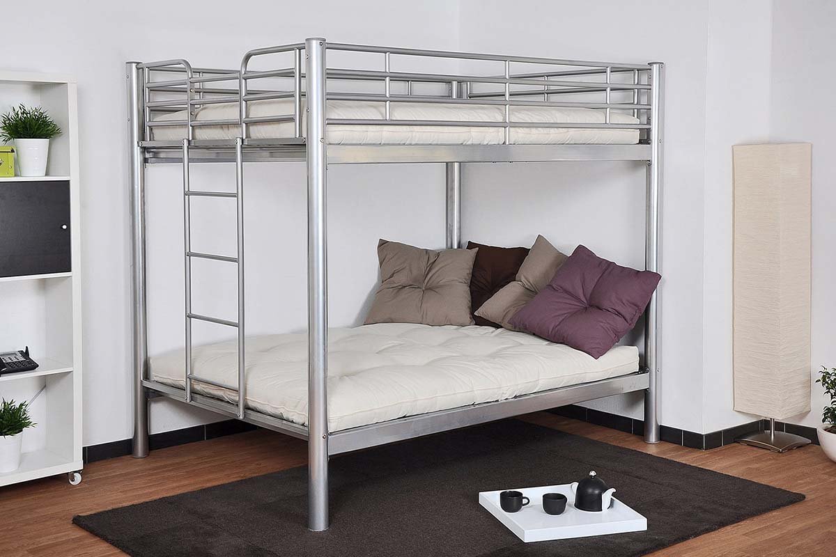 Le lit superposé Colosse en métal gris, de dimensions 140×190 cm + 140×190 cm, allie solidité, design contemporain et fonctionnalité. Il constitue une solution pratique pour optimiser l’espace de votre chambre tout en offrant un confort de couchage à deux personnes.