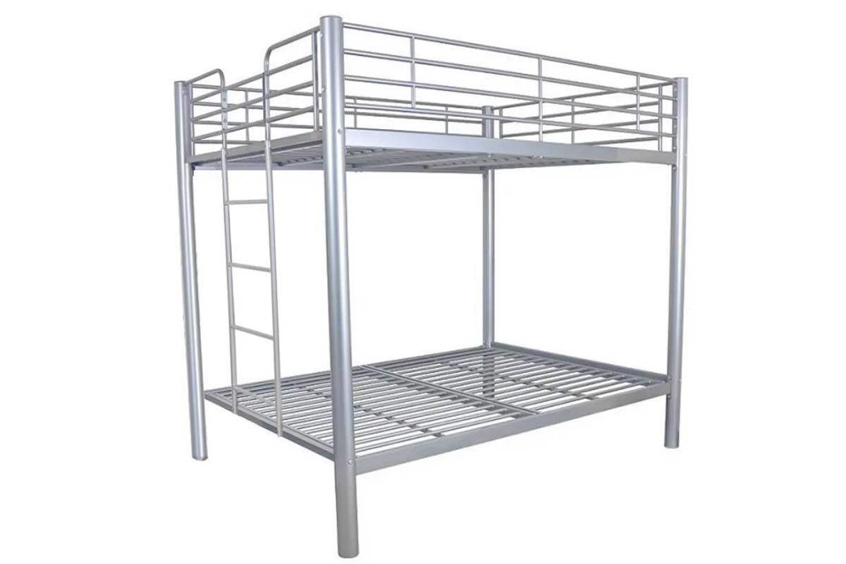 Matériau et couleur : le lit superposé est en métal et présente une finition gris foncé, lui conférant à la fois solidité et élégance.