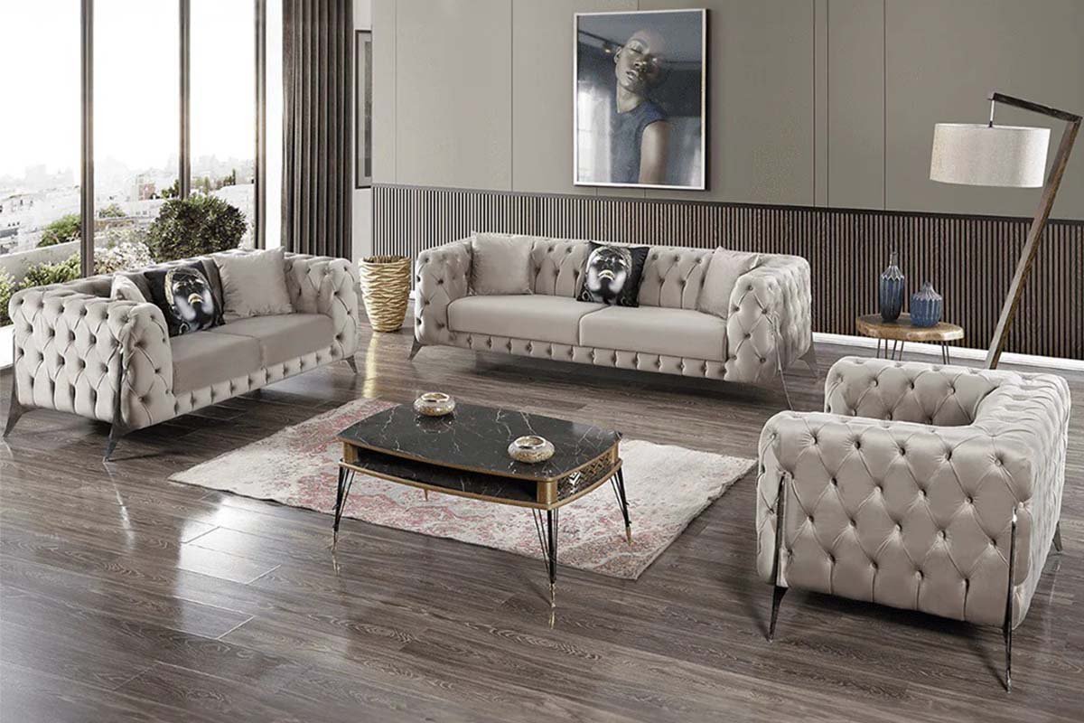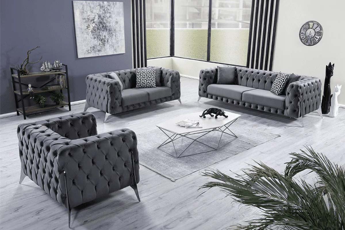 Le canapé salon Prestige est composé de trois piéces : un canapé 3 places, un canapé 2 places et un fauteuil. Voici les dimensions de chaque piéce :