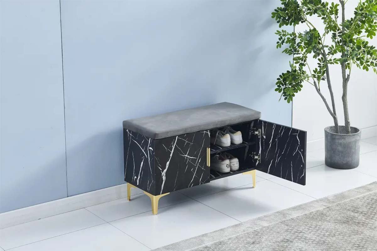 Avec ses surfaces en marbre élégantes et son design fonctionnel, ce meuble polyvalent rehausse n’importe quel décor tout en offrant une solution raffinée et pratique pour votre entrée. Créez une atmosphère accueillante et élégante avec le Meuble à Chaussures Pouf, où la forme rencontre la fonction en parfaite harmonie