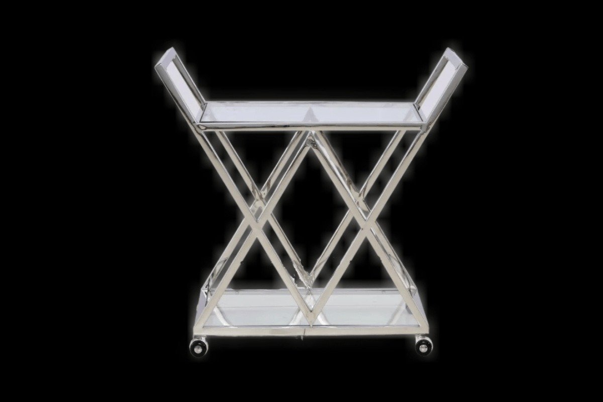 La finition chromée brillante ajoute une touche contemporaine, réfléchissant la lumière et renforçant l’attrait chic du chariot. Les étagères transparentes, fabriquées en verre ou en acrylique de haute qualité, offrent une vue dégagée sur vos articles tout en conservant une esthétique minimaliste qui s’intègre sans effort à n’importe quel décor.
