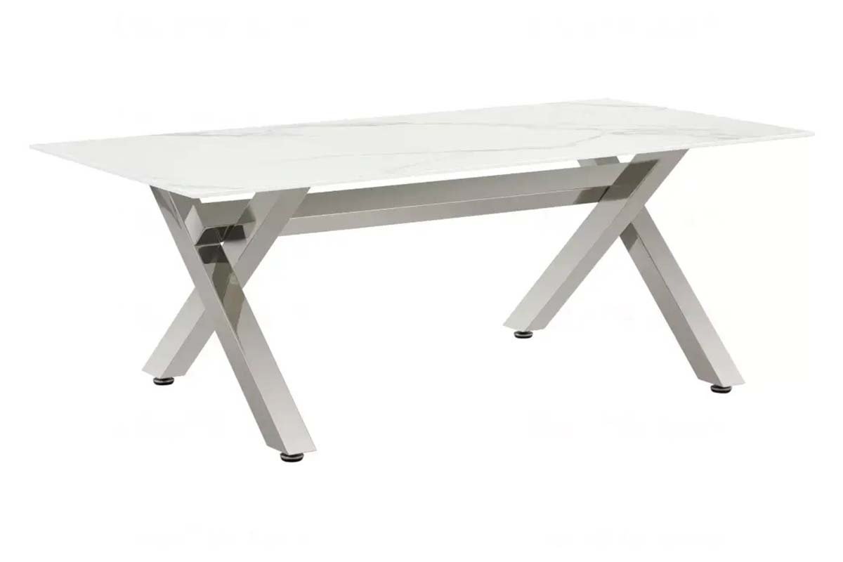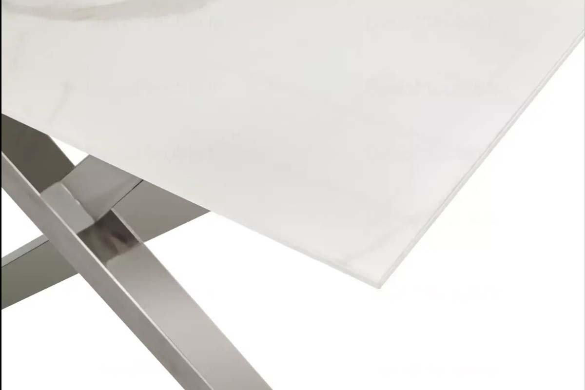 Be the first to review “Table basse marbre blanc pied argent CROSS”